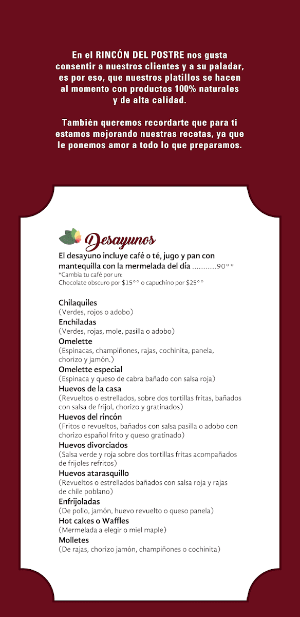 Welcome to El Rincón del Postre, a charming cafeteria nestled on Av. Luis Cabrera 15 in La Magdalena Contreras, Ciudad de México. This delightful spot shines for its cozy atmosphere, perfect for couples and families alike. Guests rave about dishes like the indulgent chocolate oaxaqueño and the much-lauded crepas, particularly the pepperoni version that is a must-try!